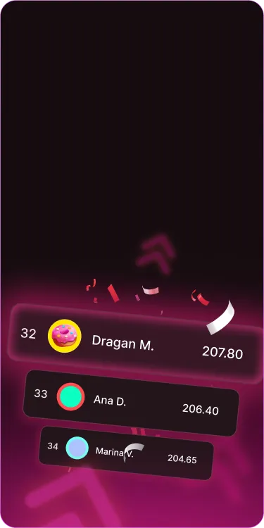 Prati svoj napredak na tabeli u realnom vremenu. U svakom trenutku možeš da vidiš svoju poziciju i koliko si blizu osvajanju nagrade.
